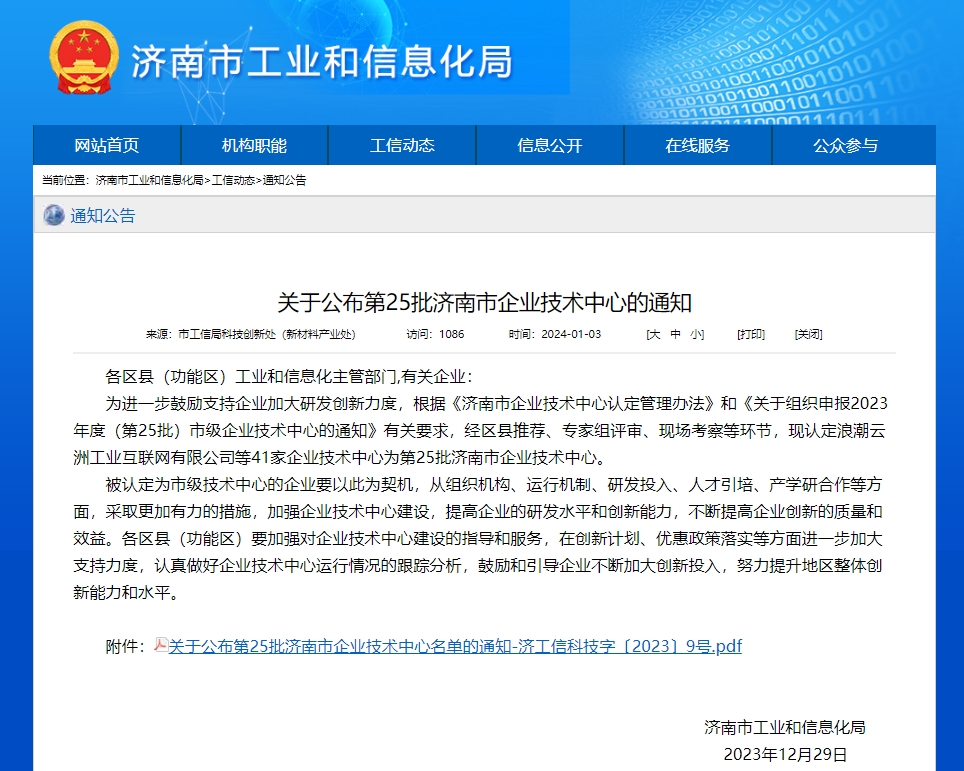 喜報!我司被認定為2023年度市級企業技術中心