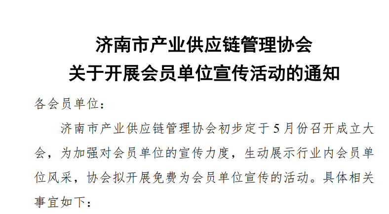 【協(xié)會(huì)信息】濟(jì)南市產(chǎn)業(yè)供應(yīng)鏈管理協(xié)會(huì)關(guān)于開展會(huì)員單位宣傳活動(dòng)的通知