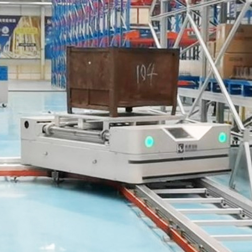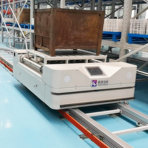雙軌環穿RGV特點是兩條環形軌道支撐RGV車體運行,可以編程實現取貨、運送、放置等任務,并可與上位機或WMS系統進行通訊,結合RFID、條碼等識別技術,在立體倉庫周圍配合輸送設備,沿固定軌道進行高速貨物搬運,實現自動化識別、存取等功能。它速度快、靈活性強、可多車協調工作。