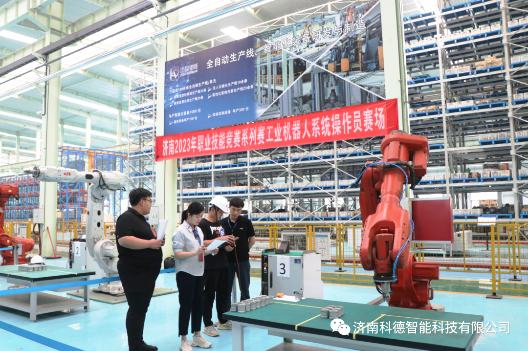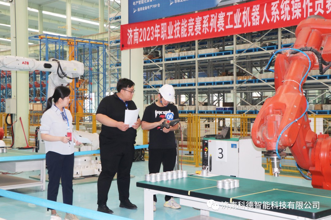 工業機器人系統操作員職業技能競賽在濟南科德智能科技有限公司舉行。競賽由理論和實操比賽構成,選手們精神飽滿、嚴謹專注,展現出精湛而扎實的業務功底和精益求精、拼搏奮進的工匠風采。