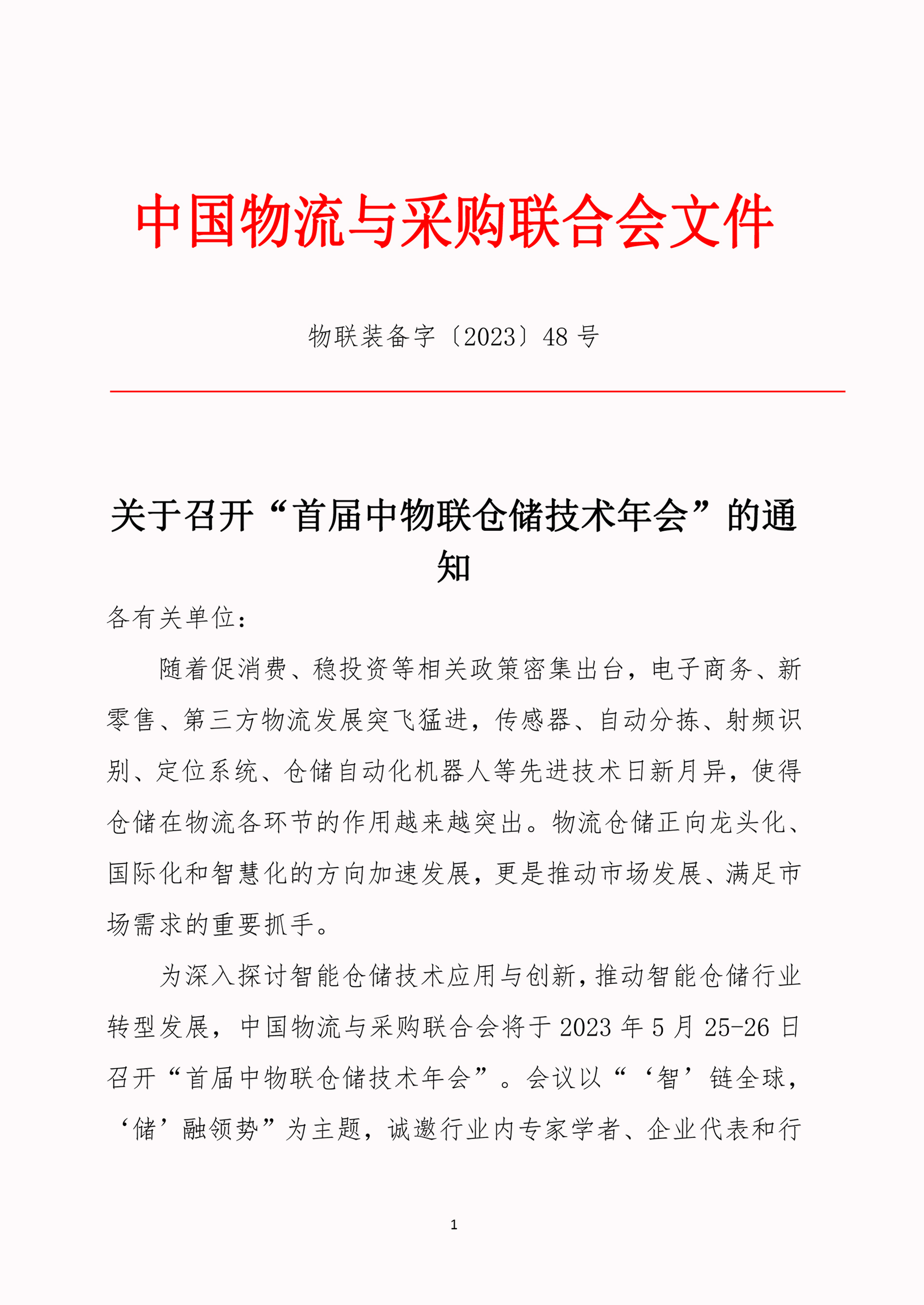 【協(xié)會(huì)活動(dòng)】關(guān)于召開“首屆中物聯(lián)倉儲(chǔ)技術(shù)年會(huì)” 的通知