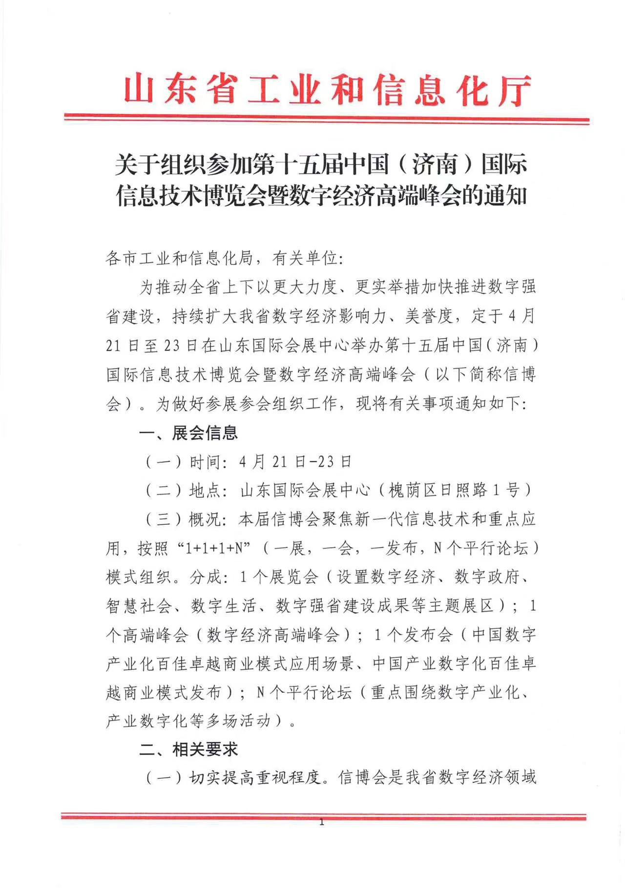 【協會信息】關于組織參加第十五屆中國(濟南)國際信息技術博覽會暨數字經濟高端峰會的通知