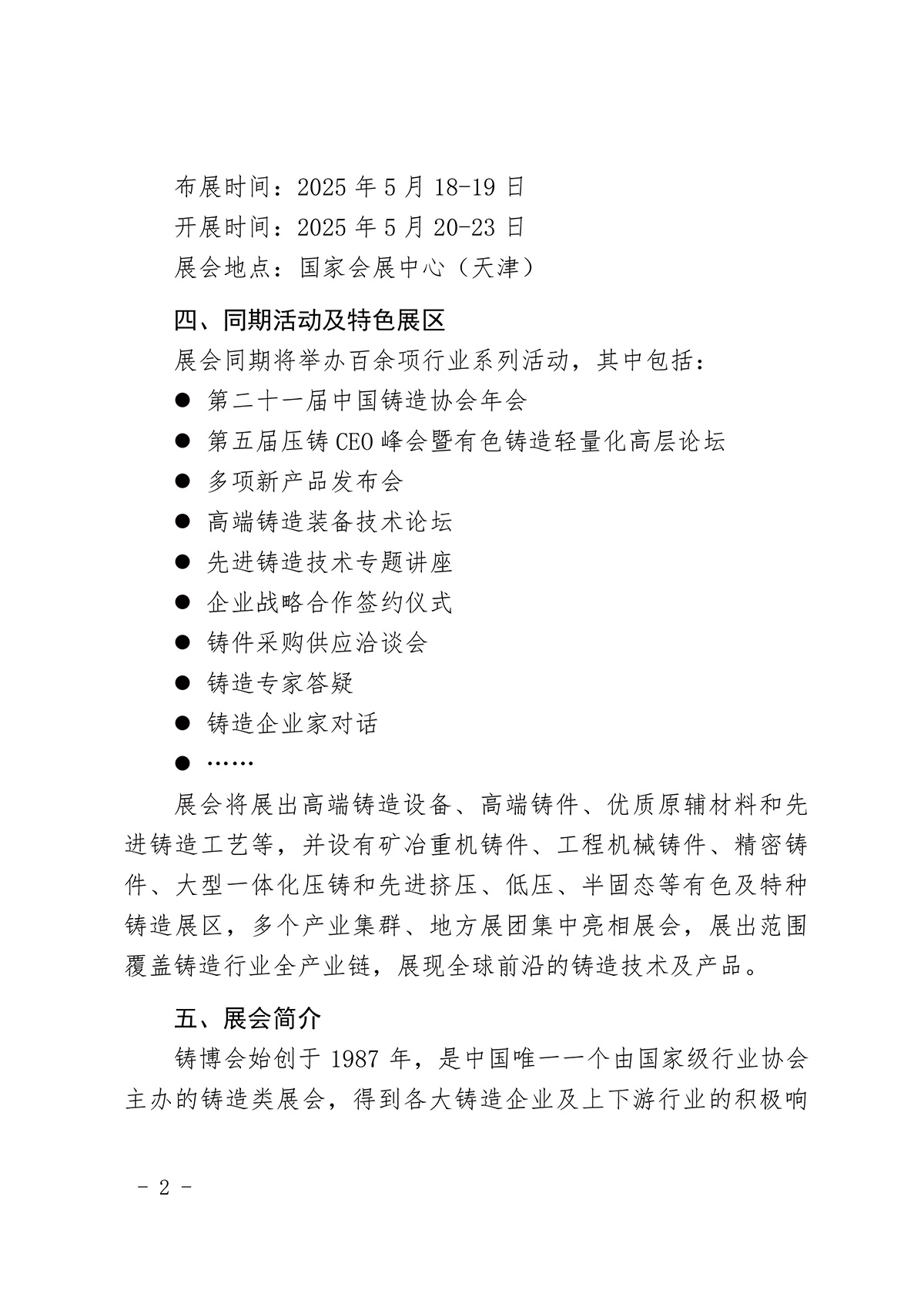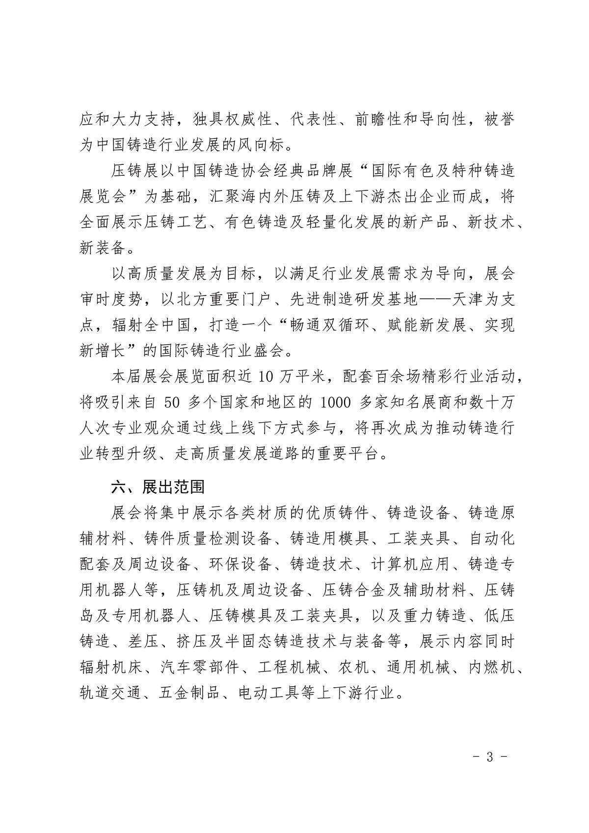 【協(xié)會活動】關(guān)于召開“第二十三屆中國國際鑄造博覽會”“第十八屆中國國際壓鑄工業(yè)展覽會”“第十八屆國際有色及特種鑄造展覽會”的通知